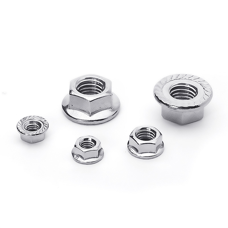 法兰螺母也称带垫螺母,花齿螺母,六角法兰面螺母,法兰螺帽等。大多用在管道连接或者需要增加螺母接触面的工件上。法兰螺母和一般的六角螺母尺寸与螺纹规格基本相同,只不过比六角螺母相比,它是垫片和螺母是一体式的,而且在下面有防滑的齿纹,这样增大了螺母与工件的表面积接触,相比普通螺母加垫圈的组合,更加牢固和拉力更大。一般常见的法兰螺母规格大致都在M20以下,因为大部分法兰螺母都是用在管道及法兰盘上,所以受工件约束,法兰螺母规格同螺母相比比较少一些。